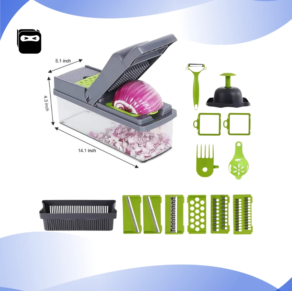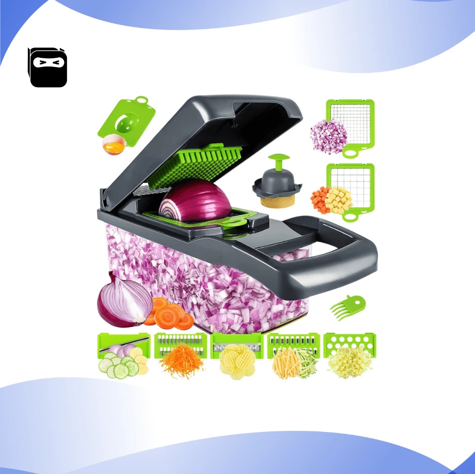 Haz que cocinar sea más rápido y fácil con la Picadora de Verduras Multifuncional. Su diseño práctico y afiladas cuchillas te permiten cortar, picar y trocear frutas o verduras en segundos, sin esfuerzo y con resultados perfectos.